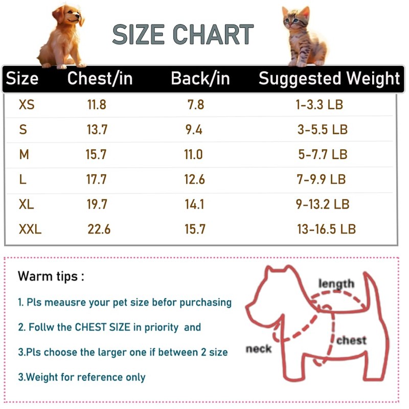 - 【Size X-Large】: Chest girth-19.7”, Back Length-14.1”, weight under 9-13.2 lb, pet dress for small dog and cat only, please check the size carefully before placing an order