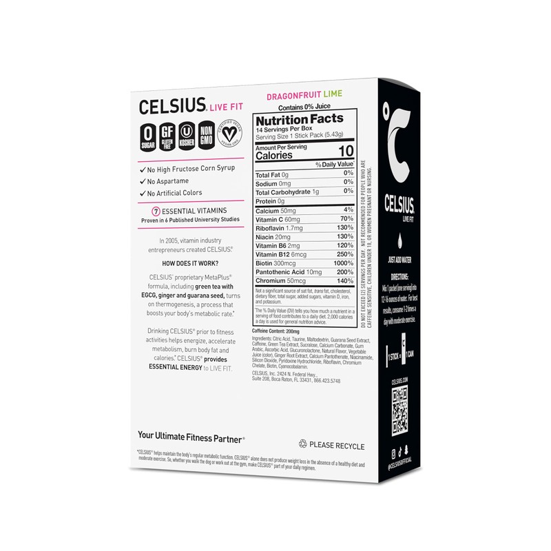 CELSIUS® is functional, Essential Energy—a better-for-you, premium alternative to traditional energy drinks, made with 7 essential vitamins and zero sugar. As a global lifestyle fitness drink, CELSIUS was created to help people LIVE FIT, exceed their goals, and elevate their everyday lives.