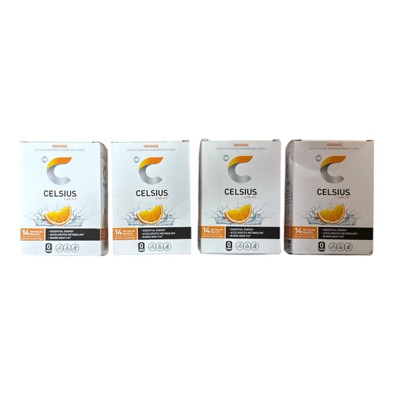 Celsius Orange On-the-go Powder Stick Packs, Zero Sugar (14 Sticks Per Pack) X4