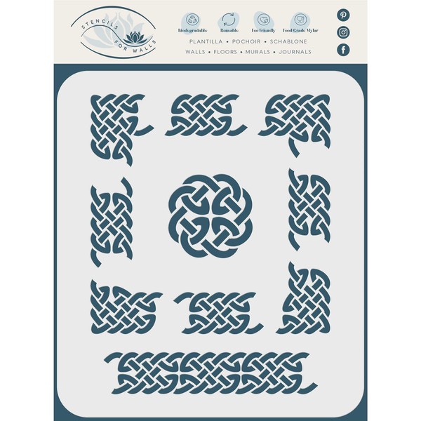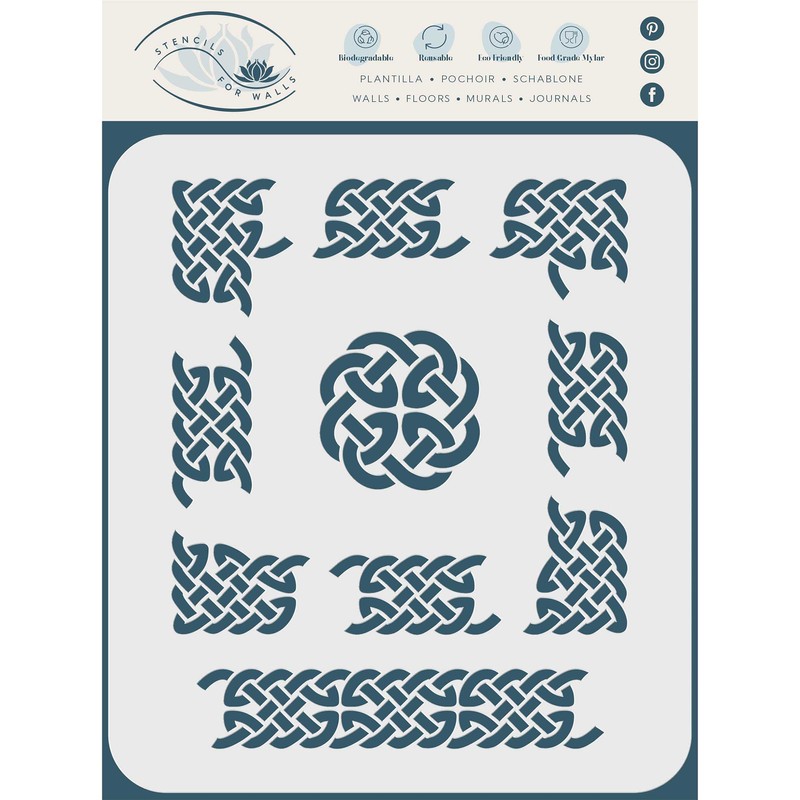 Celtic Frame Stencil 21.5 x 26.5 cm (M) - Irish Celtic Viking Frame Knotwork Design Woven Ethnic Braided Protection Knot Stencils for Painting Template