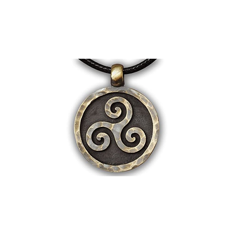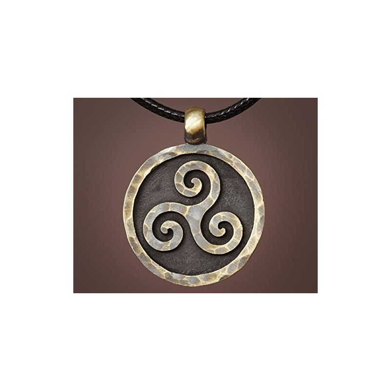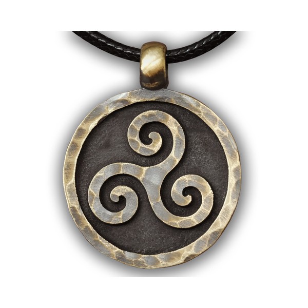 Celtic Triskelion Triskele Spiral of Life Pendant with sring (Brass, Ancient Looking)