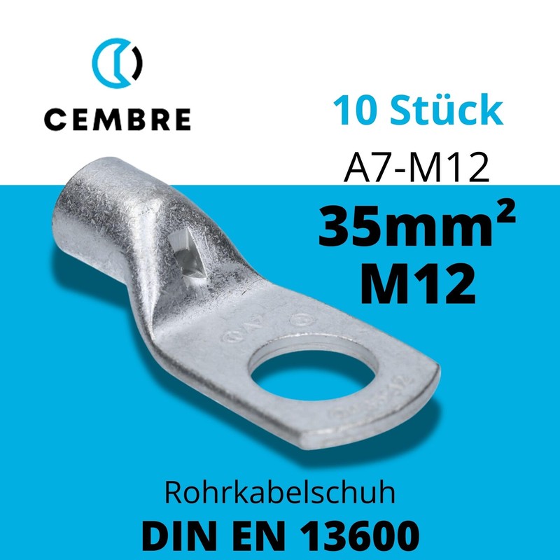 Cembre A7-M12 Tube Cable Lug 35 mm² M12 Uninsulated Tin-Plated Copper Pack of 10