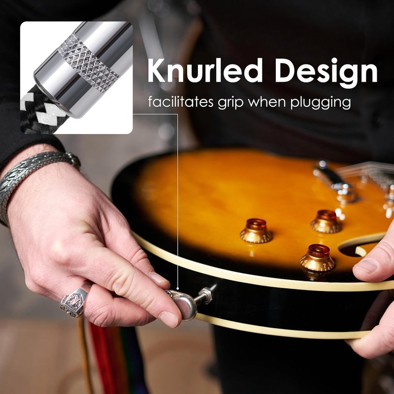 - Straight to Right-angle Design: CeMeow guitar cable uses a 1/4-inch straight to right angle nickel-plated plug. Compared to the straight plug, the right-angle design shortens the signal transmission path and reduces signal loss, resulting in clearer sound quality and richer details. In addition, the right-angle cable has a more compact shape, making it suitable for use in narrow spaces
