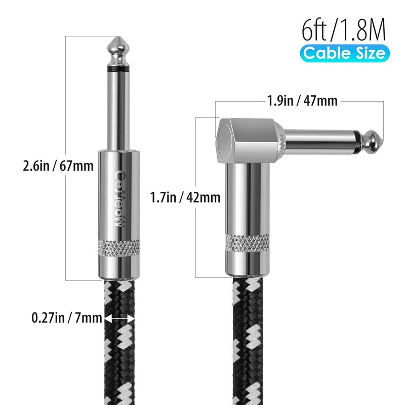 - Wide Application: CeMeow instrument cable is suitable for instruments and equipment with a 6.35mm interface diameter, such as electric guitars, basses, mixers, amplifiers, speakers, keyboards, effects pedals, electronic pianos or drums, decoders, equalizers, and more. It is versatile for various scenarios