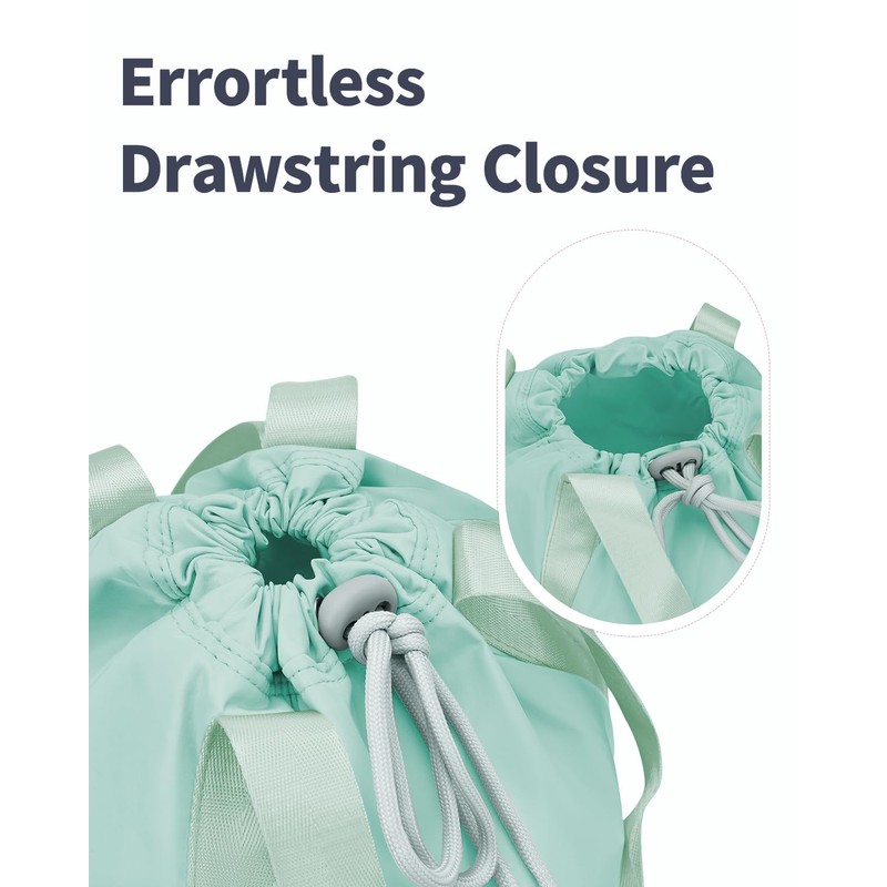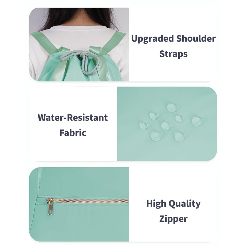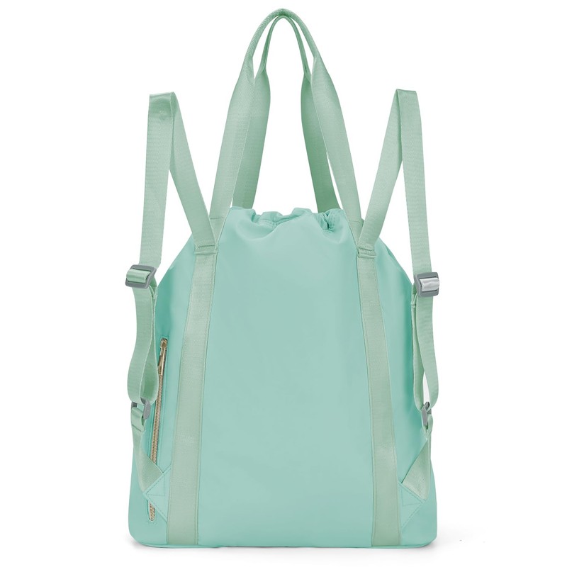 Ceneda Drawstring Backpack String Bag for Women Men Water Resistant Drawstring Bags Gym Sack with Zipper Pockets Sports Gym Bag (Mint Green)