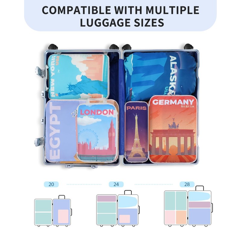 Ceneda Suitcase Organiser Packing Cubes Compression 7 Pieces, Suitcase Organiser Set, Packing Cubes Compression, Travel Organiser Packing Bags (City)