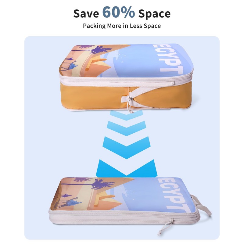 - 【Save up to 60% Space】: The double zipper design effortlessly compresses clothes and essentials into a compact format, freeing up to 60% space for more items. The high-quality two-way zip (durable yet smooth) with extended drawstring allows quick and easy access to your belongings.