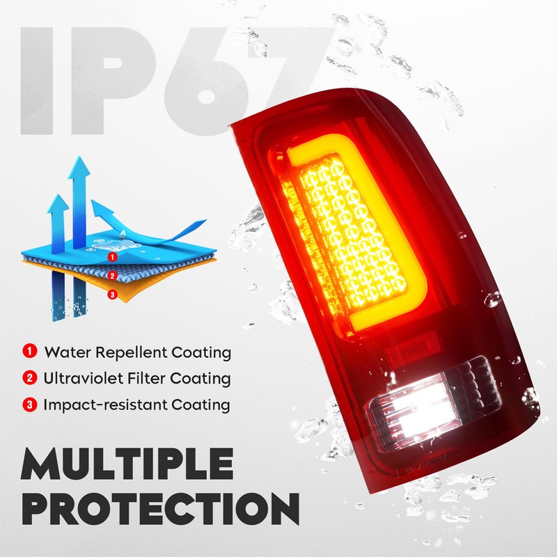 - [Durable Construction]: This rear Lamp Assembly made from ABS & PC materials, preventing water snow or heavy rain from leaking in. Superior resistance to weather conditions and fading, IP67 waterproof, waterproof gasket included.