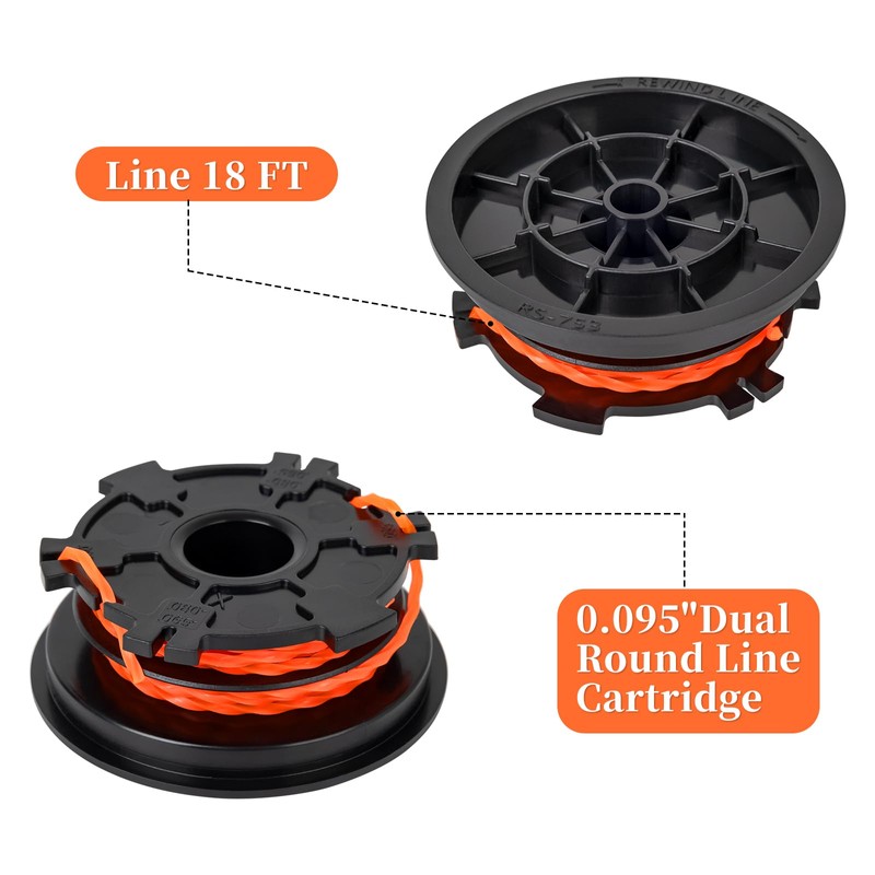 - [Easy to Install] Each spool and trimmer line comes pre-wound which can be replaced easily in a few seconds. It is very easy to assemble and remove, you can snap it into the right place and then assemble them quickly and easily just by hands, no need other tools.