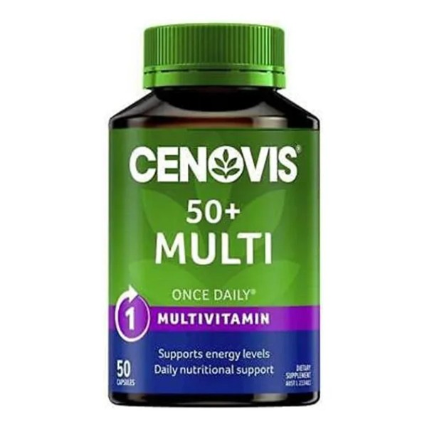 Cenovis 50+ es un suplemento multivitamínico formulado para adultos mayores de 50 años. Contiene 27 ingredientes seleccionados para proporcionar soporte nutricional diario. Una cápsula al día ayuda a mantener niveles de energía saludables, apoya la función del sistema nervioso e inmune, y contribuye al bienestar general.