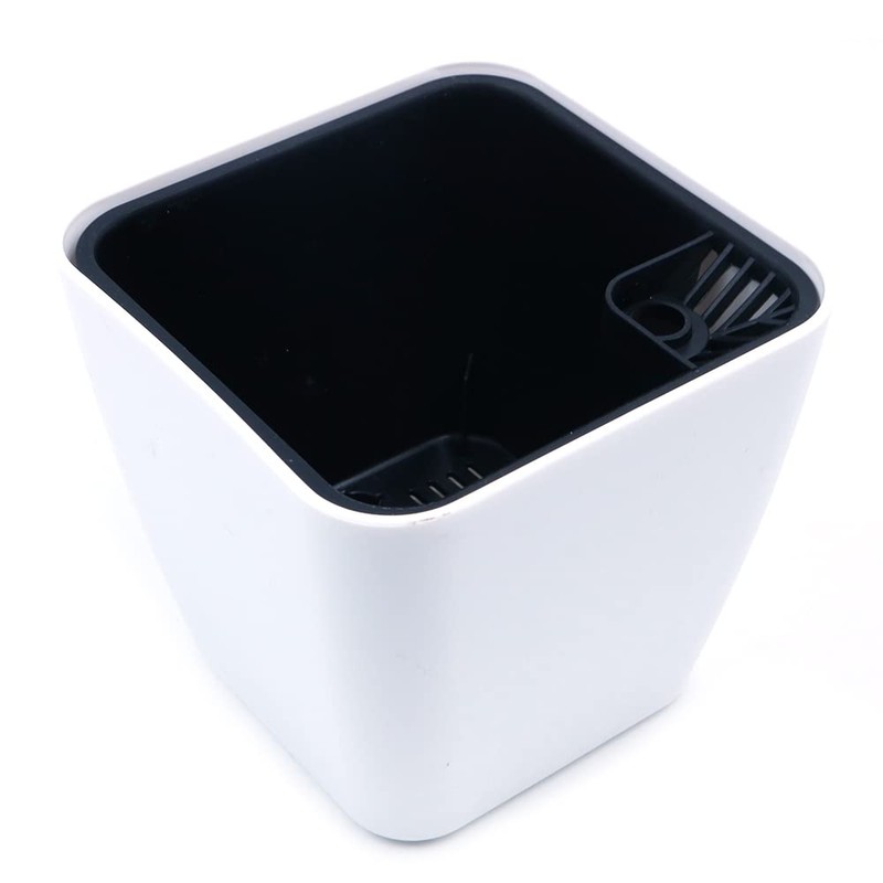 CENPEK 13CM Self Watering Plastic Planter with Water Level Indicator - Matte White, Modern Decorative Planter Flower Pot for House Plants, Herbs, Aloe, African Violets, Succulents and More