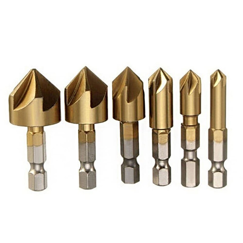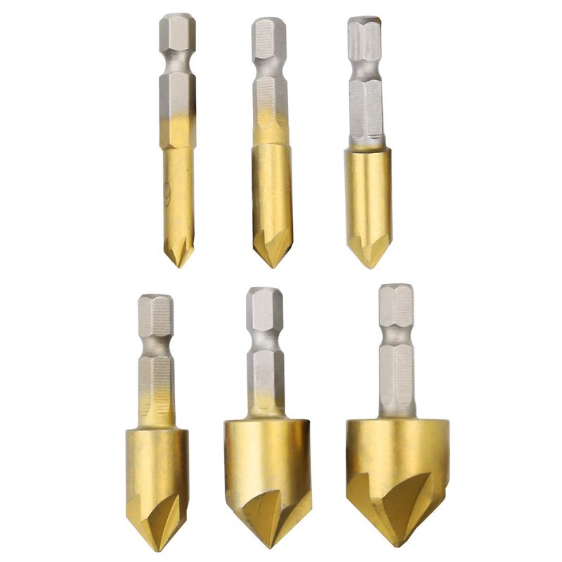 Countersunk Drill Bit Set - 7 Pieces Counter Sinker Drill Bit for Wood, Quick Change 1/4 in SEX SHANK 6 Flute 90 Degree Centre Punch Tool