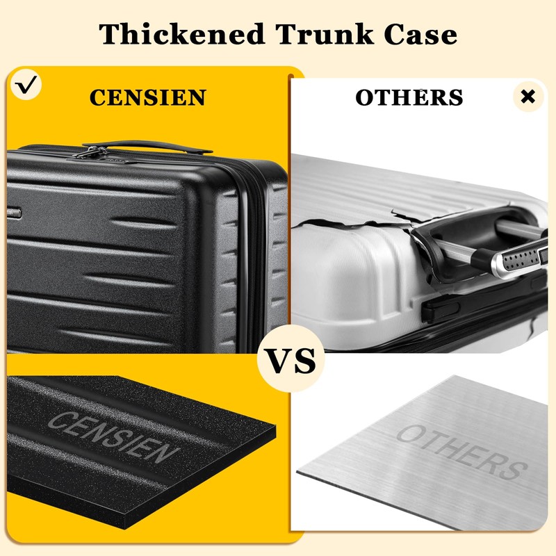 Crafted with a durable ABS+PC hardshell, the CENSIEN suitcase is lightweight yet built to last. Its scratch-resistant side surface ensures that your suitcase remains in perfect condition even after continuous use.