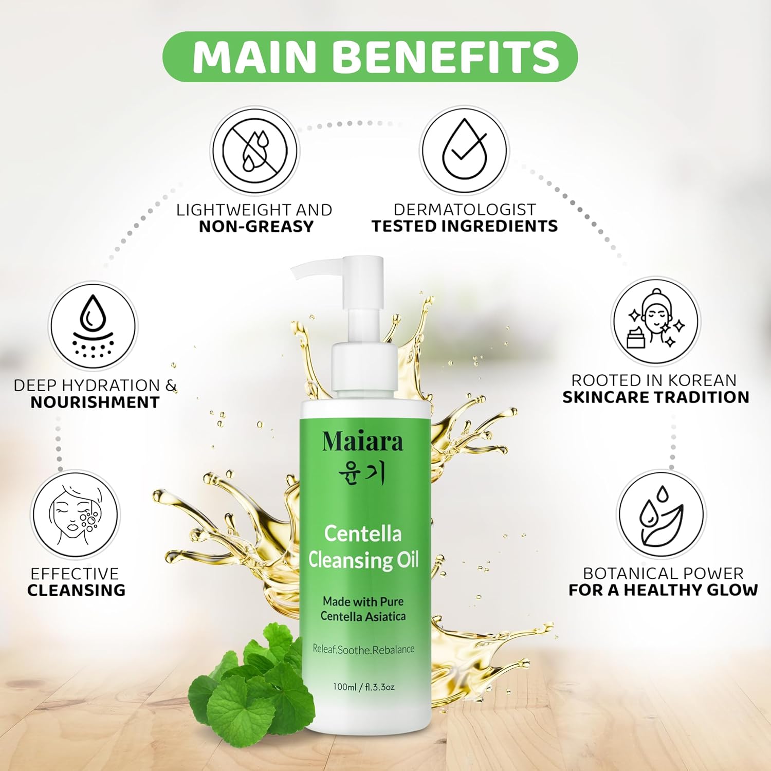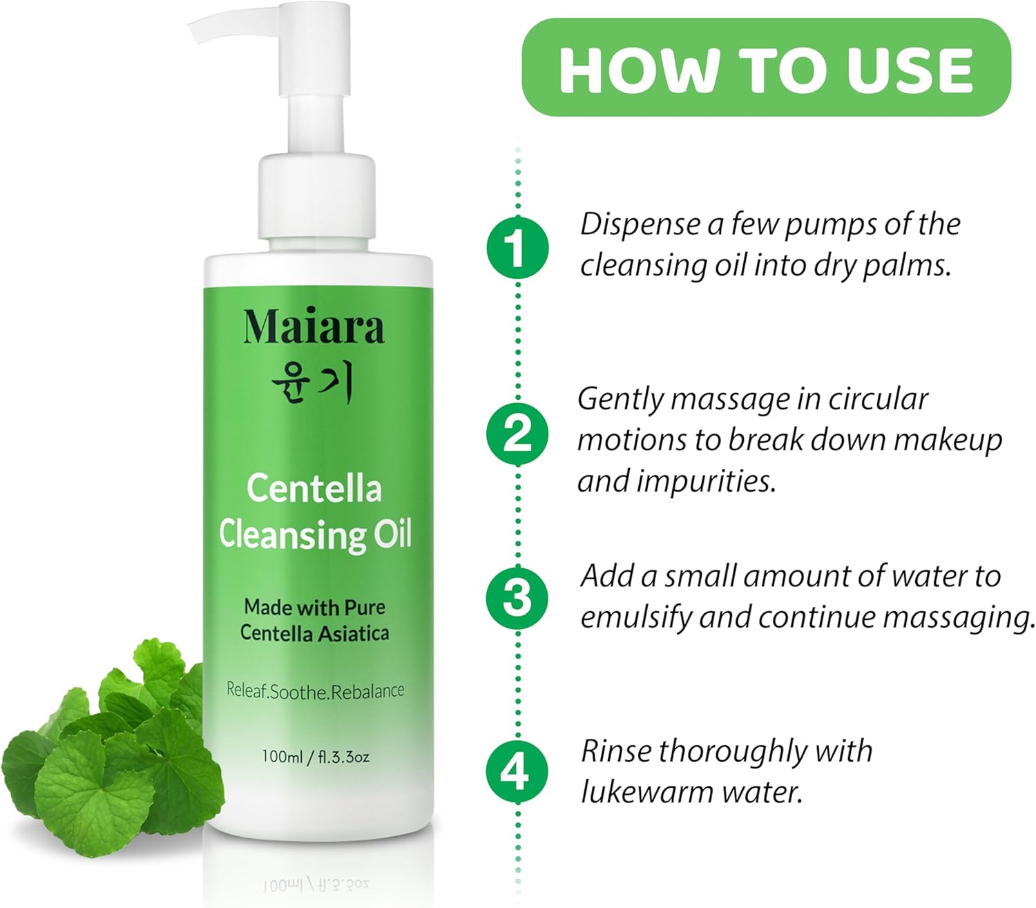 Centella Cleansing Oil - Korean Skincare Oil Cleanser for Face - Centella Asiatica Hydrating Facial Cleanser with Natural Ingredients - Gentle Daily Cleanser (100 ml)