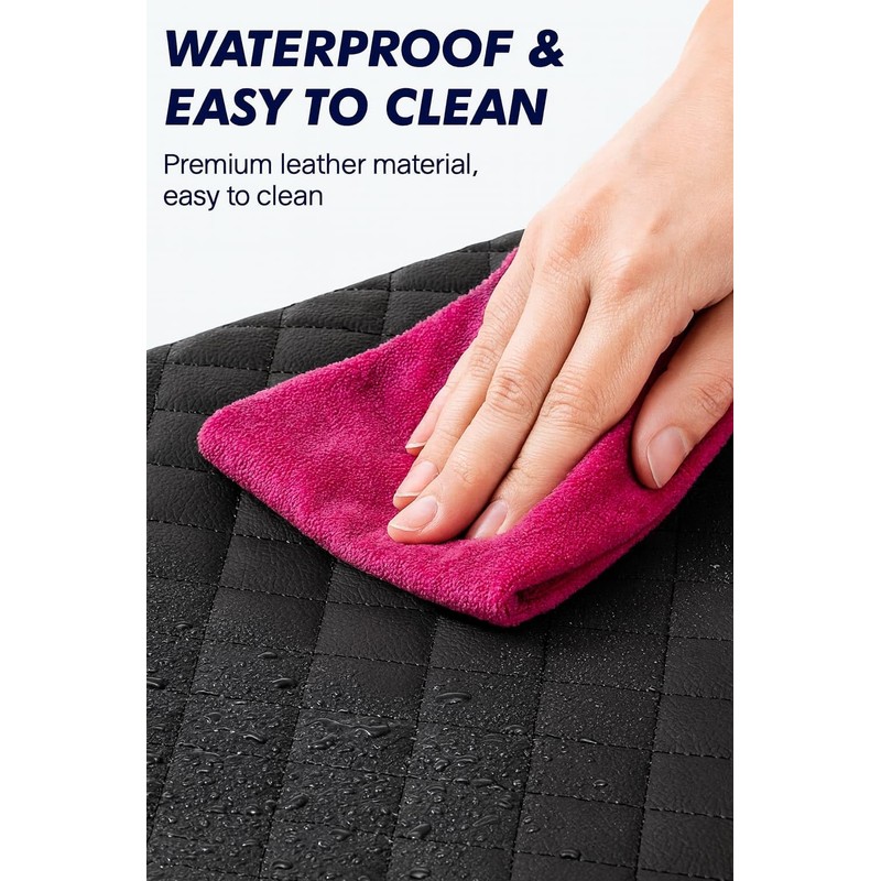 - Durable & Easy-Care Material - Crafted from scratch-resistant vegan leather, the cover protects against pet claws, fingernails, keys, and UV damage, while the waterproof and dirt-proof surface repels stains from spills, sweat, or pet messes. Simply wipe clean for low-maintenance upkeep, and the protectors shield belts from fraying.