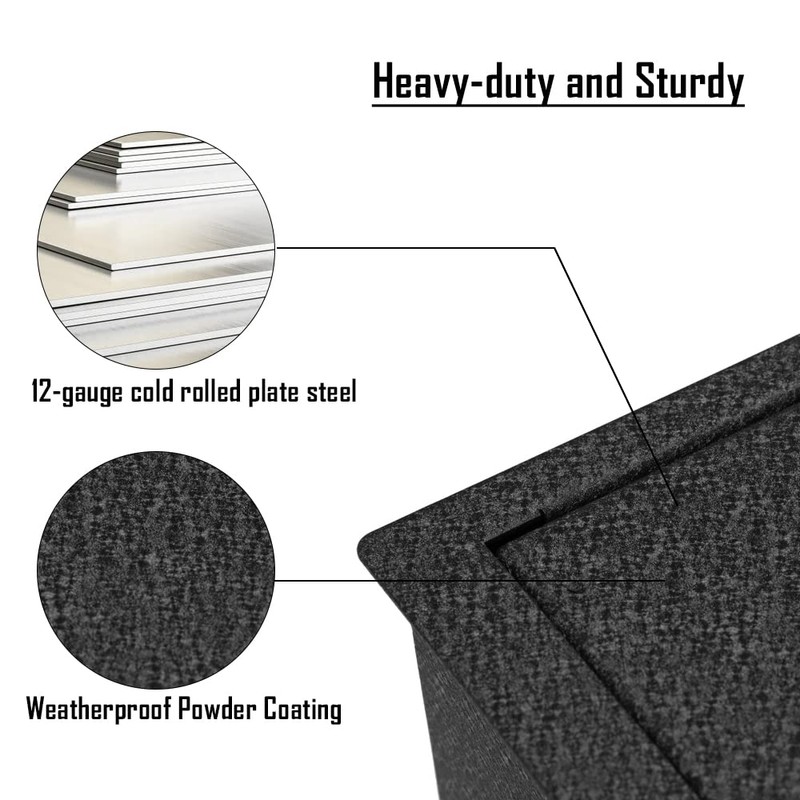 - All car safes are made of 12-gauge heavy gauge cold rolled plate steel with a weatherproof powder coating surface which is reliable and durable.