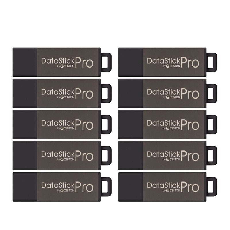 Centon Electronics DataStick Pro USB 2.0 Flash Drive, 2 GB, 10 USB Flash Drives, 10 Bulk Pack, Grey
