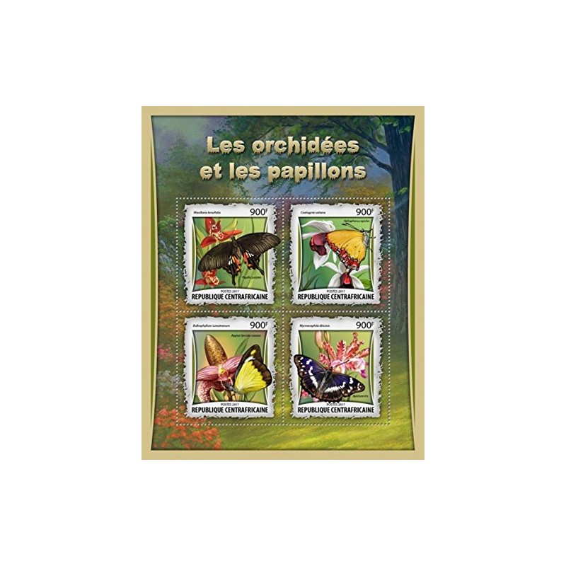 Central Africa - 2017 Orchids & Butterflies - 4 Stamp Sheet - CA17009a