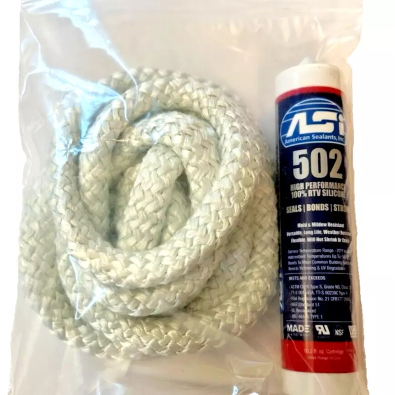 Kit includes door seal rope, 7/8" cut to length (9 ft), black silicone adhesive and instructions. For Classic 4030, 5036, 6048 model doors, Hydrofire model doors, and Forge 1500, 3500 model doors. For cast door and steel door models if applicable. Will not work on Classic 7260 or Pallet Burner.