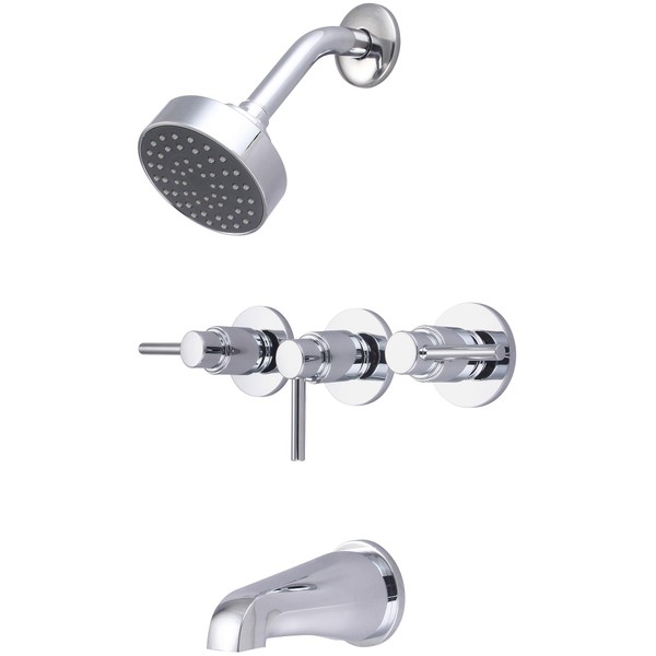 Central Brass 8968-M1 Brass Single Function Standard Showerhead Three Handle Tube & Shower Set in Chrome