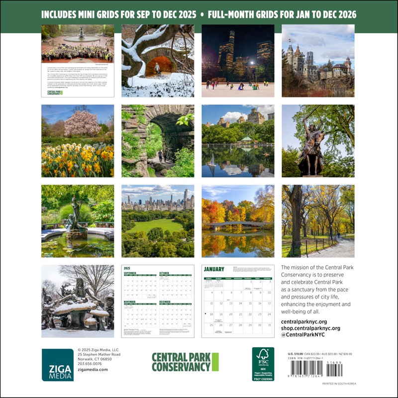 Central Park Conservancy Wall Calendar 2026, Monthly January–December 12" x 12"