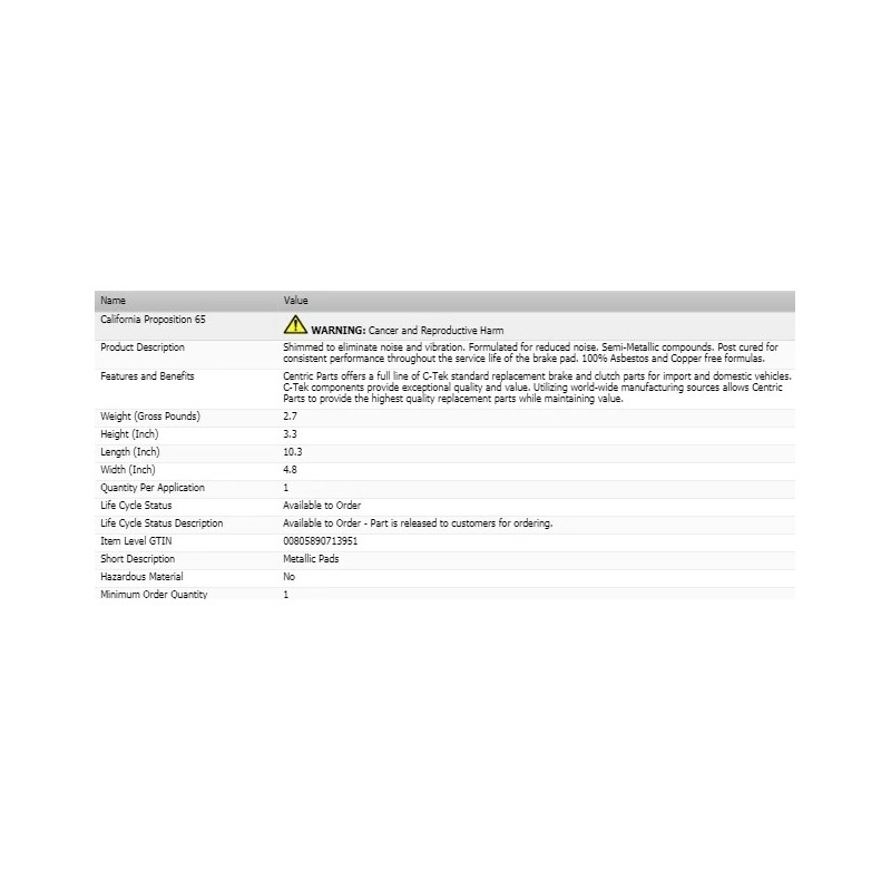 Centric BRAKE PADS CENTRIC FRONT SET LEFT & RIGHT For 2001-2007 TOYOTA SEQUOIA