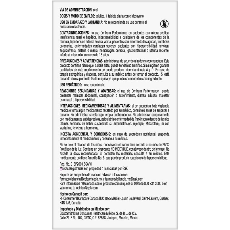 Centrum Performance for vitamin and mineral deficiencies. Treatment related to decreased physical capacity and improvement of stress response conditions, manifested as: fatigue, weakness and lack of attention.