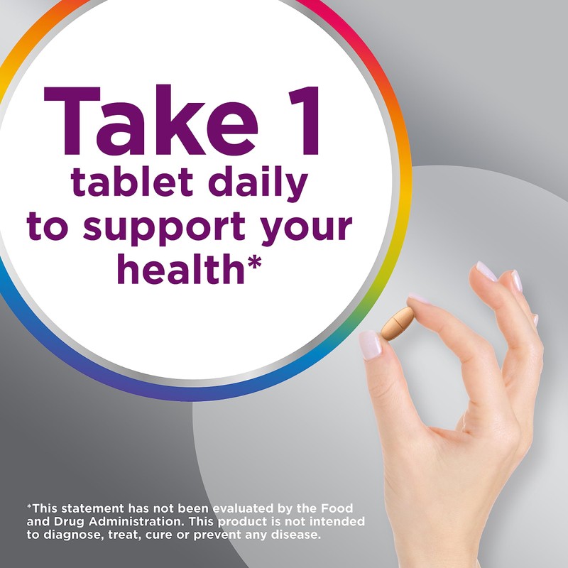 Centrum Silver Women's Multivitamin for Women Plus brings you a tailored multivitamin/multimineral supplement that contains micronutrients to help support full body wellness (). This women's vitamin with iron contains essential nutrients, including vitamin D and calcium to support strong bones and B Vitamins to help promote heart health (, ). This multivitamin for women over also contains zinc and B Vitamins to help support normal brain function and Vitamins A, C, and E for eye health (, ). Key micronutrients in these multivitamins with zinc supplements help fill in nutritional gaps to promote overall wellness and vitality (). These women's vitamins are verified Non-GMO () and gluten free. This women's multivitamin with iron features a smooth coating that makes it easy to swallow. Simply take one multivitamin daily to provide your body with essential vitamins and minerals. Centrum Silver is the number Doctor recommended multivitamin brand now shown to support memory and cognition in older adults (). IQVIA: Claim substantiation Validation Statement. July . IQVIA, using the ProVoice Survey, recorded the product recommended most often within the Adult Multivitamins category by physicians and pharmacists in the United States. A statistically significant majority of the panel of physicians and pharmacists responded that Centrum is the product they endorse most.() These statements have not been evaluated by the Food and Drug Administration. This product is not intended to diagnose, treat, cure or prevent any disease.() Not a replacement for cholesterol-lowering drugs () () Read more about our Non-GMO standard on Centrum's official website.