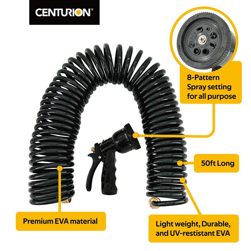Centurion 710 Non-Kink Coil Hose with 7-Pattern Sprayer (Black, 50 FT)