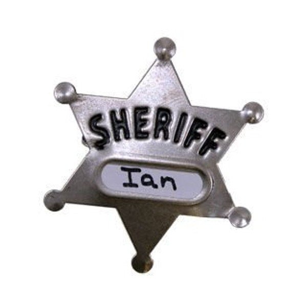 - This posting includes: 1 2.25" metallic Sheriff badge as featured with self customizable name plate