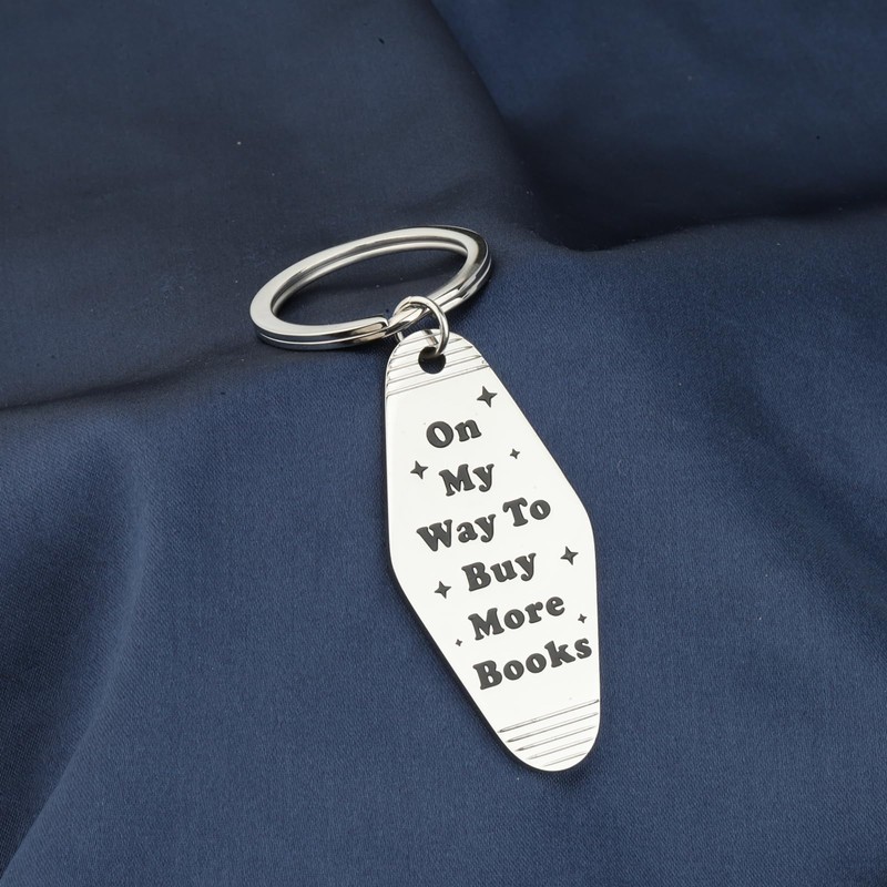 CENWA Bookish Book Lover Motel Keychain On My Way To Buy More Books Funny Gifts for Her Car Accessories, Grey