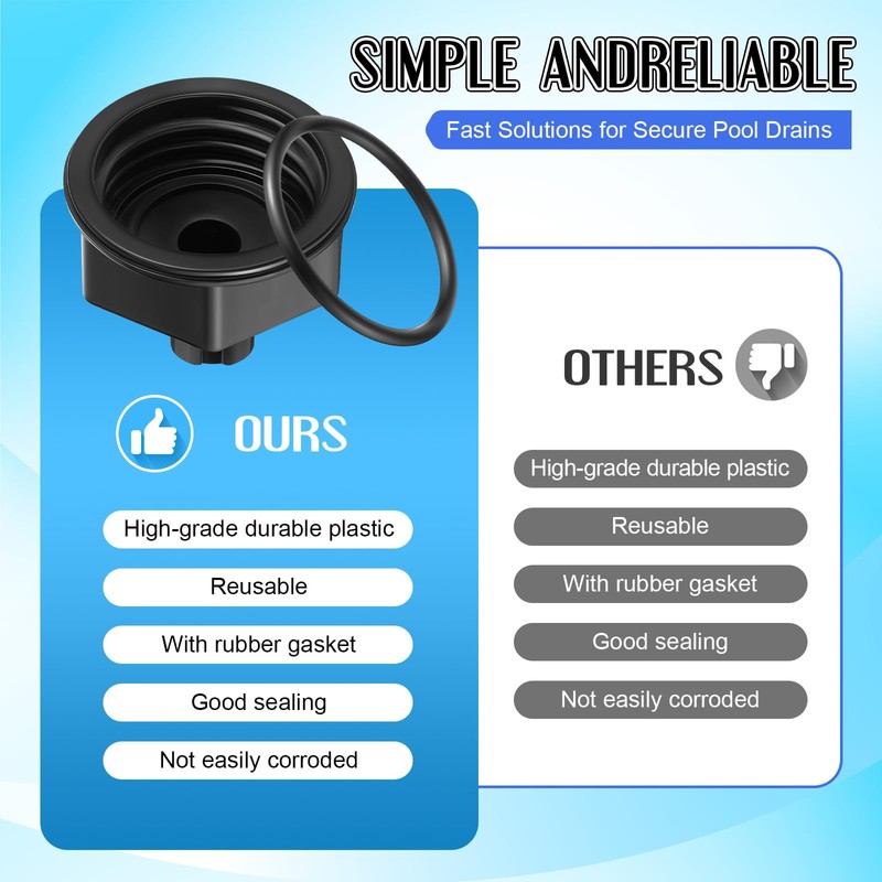 - Product Material: The pool sand filter drain cap is made of premium plastic, and the gasket is made of rubber, providing a tight and safe seal, resistant to damage and deformation, this sturdy construction ensures your pool maintenance routine stays hassle free for years