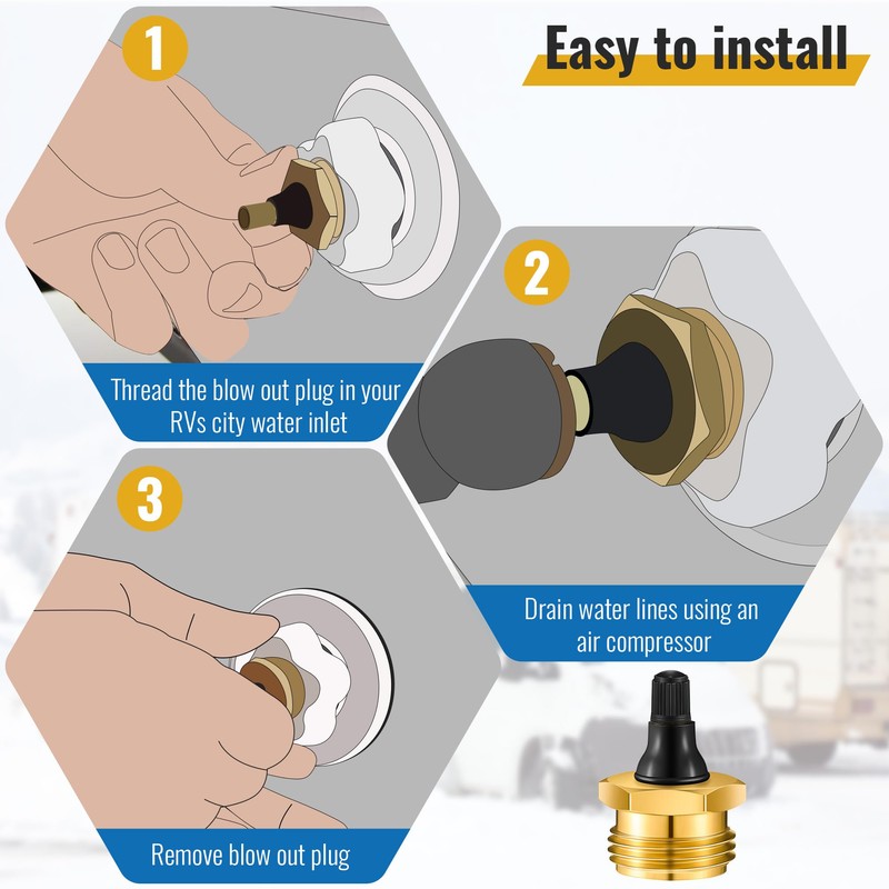 • Eliminate Safety Hazards: This RV antifreeze accessory eliminates the risk of water pipe bursts in the winter; Protect your travel trailers from serious damage caused by freezing water with this essential RV blowout plug