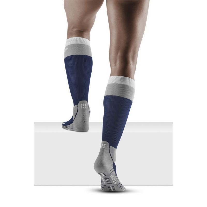 CEP HIKING LIGHT MERINO SOCKS REDESIGN for Men, Long Hiking Socks with Activating Compression, Trekking Socks for Light Legs, Navy blue/grey, M