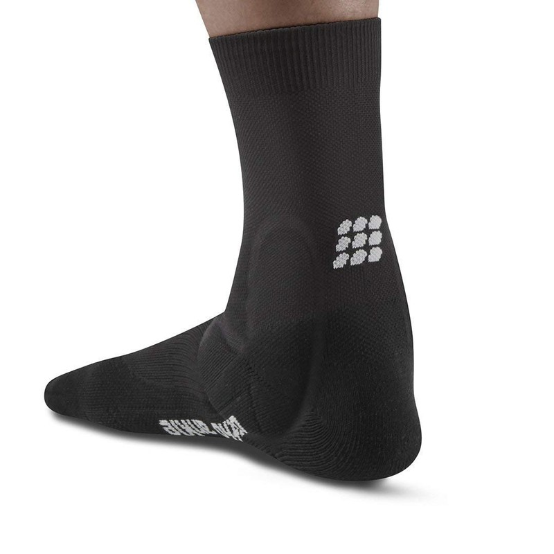 - CEP Mid-Cut Socks: Fits just below the calf for a crew length height. Minimalist design allows for greater feel in the foot bed. These lightweight socks are perfect for everyday running, reduceing sweaty feet and hot spots.