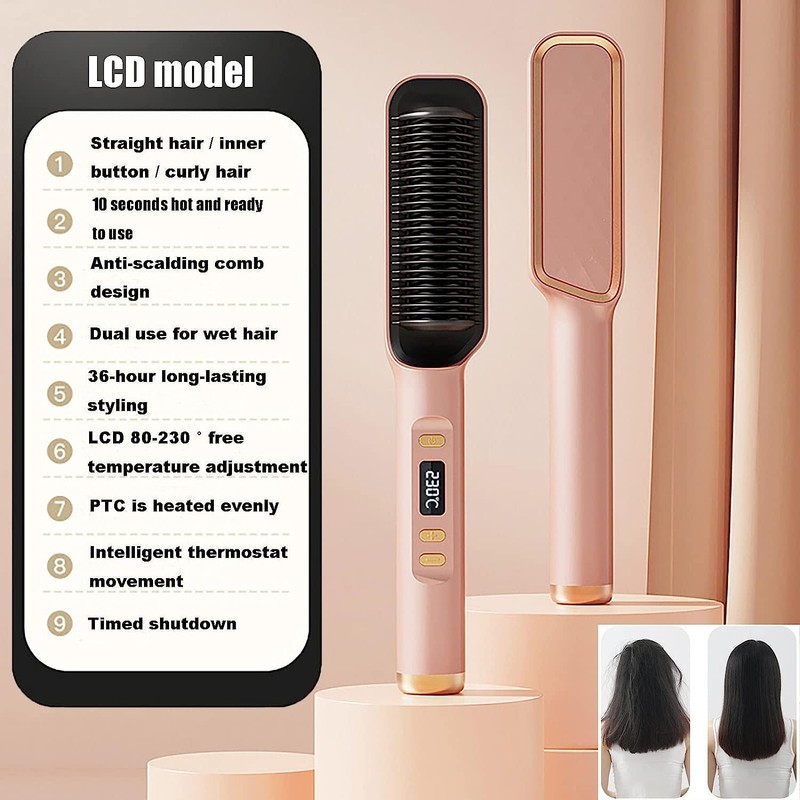 - Control de temperatura inteligente: este cepillo para alisar el cabello tiene 30 modos de control de temperatura, y la temperatura es ajustable de 80 °C a 230 °C, lo que puede satisfacer diversas necesidades de estilo de diferentes tipos de cabello. Elige el atuendo adecuado para tu tipo de cabello. Calienta rápidamente en 30 segundos y no pierdas más tiempo en tu ajetreo matutino.
