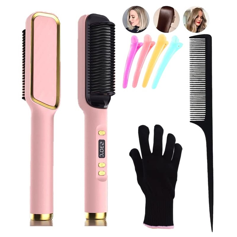 - Lista de embalaje: 1 cepillo para alisar el cabello, 1 peine de cola puntiaguda, 1 guante, 4 horquillas Jelly (color aleatorio). Para cualquier duda o consulta, solo contáctenos: ¡nuestro asistente de atención al cliente 24/7 está siempre listo!