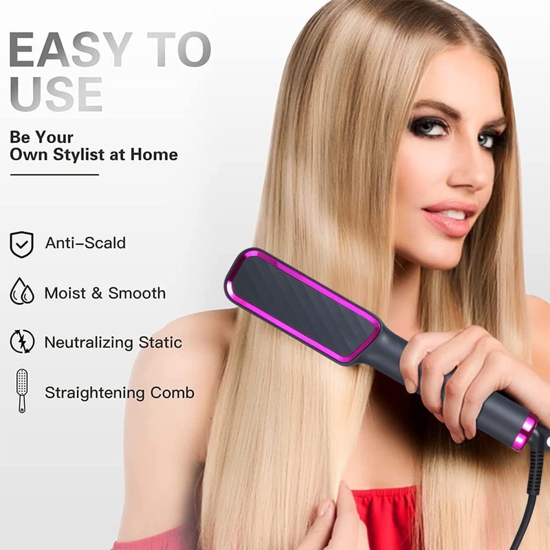 - Cuidado del cabello iónico negativo: el cepillo para alisar el cabello presenta un diseño con carga iónica para ayudar a mantener el cabello suave como la seda, reparar daños y roturas, y hacer que las puntas abiertas y los cabellos sueltos sean cosa del pasado. Las cerdas 3D y la tecnología de calentamiento PTC brindan un calor uniforme, lo que reduce el daño por calor en un 50 % para un acabado de calidad de salón sin frizz.