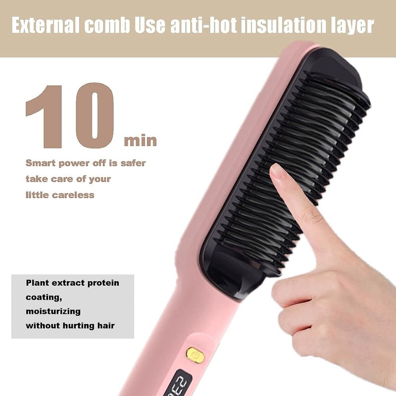 - Apagado inteligente del diseño anti-escaldado: hay una cubierta anti-escaldado alrededor del peine, que no daña el cuero cabelludo ni las manos, y no necesita tener cuidado al diseñar su peinado. Además, la función de apagado automático de 10 minutos lo mantiene a usted y a su familia a salvo de quemaduras accidentales.