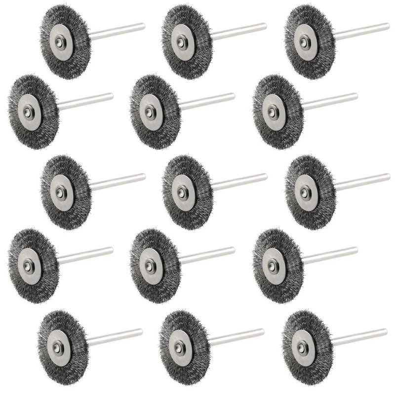 cepillo para polvo de alambre LUORNG 15 piezas de acero inoxidable de 25 mm, cepillo para polvo de pulido para herramienta giratoria Dremel