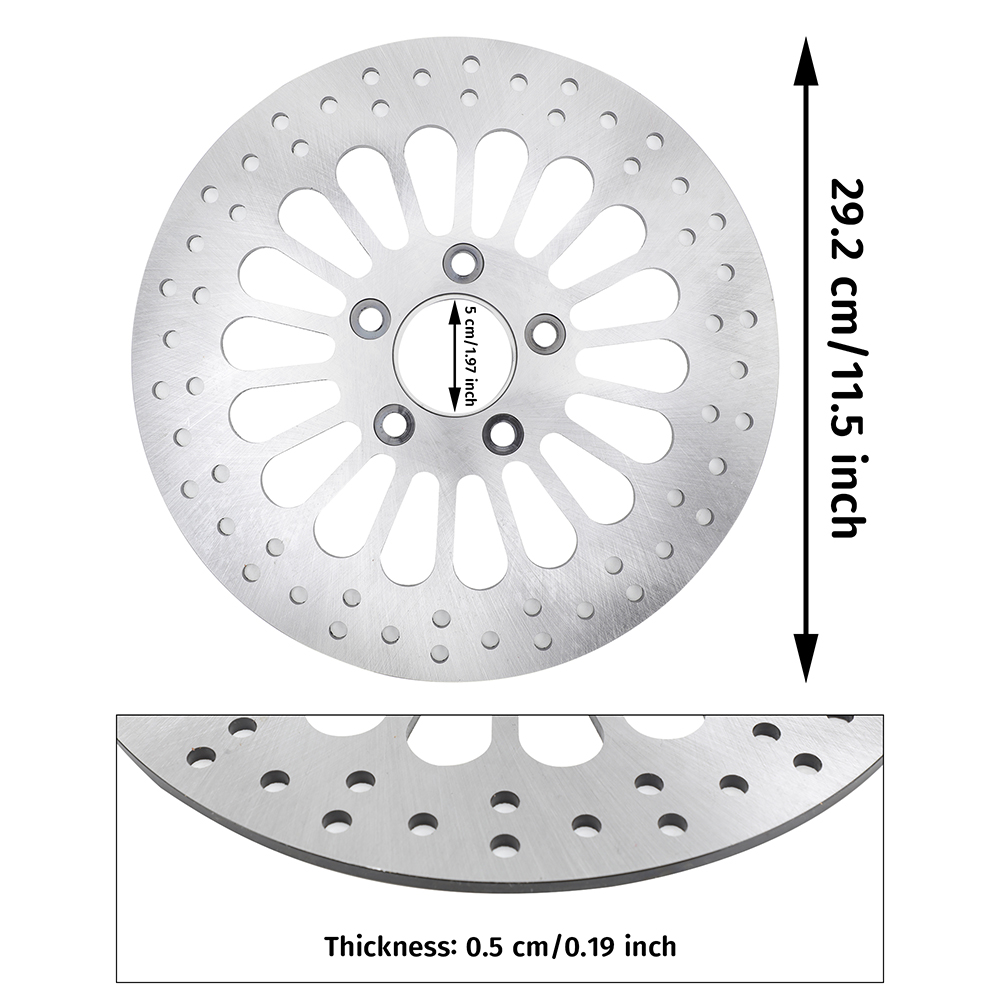 • QUALITY MATERIAL: Rust-resistant SUS420 stainless steel drilled 11-1/2" brake rotors for harley davidson.