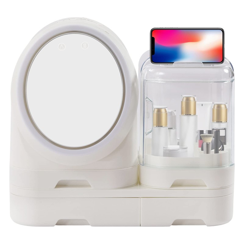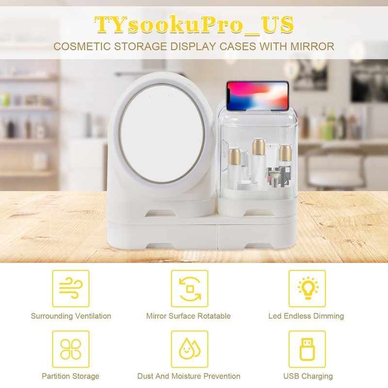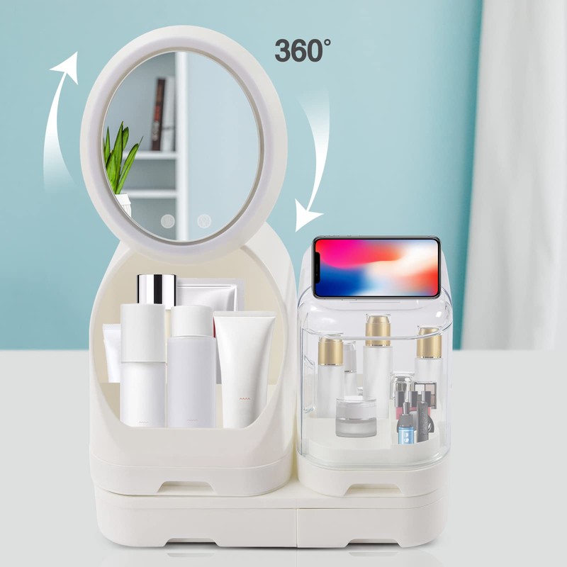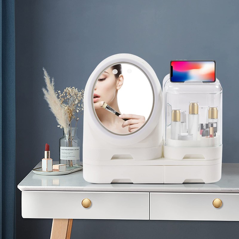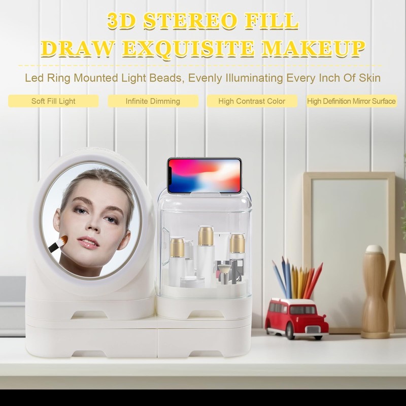 - 🏡【High Cost-performance】When you receive the makeup storage box, you can have a make-up mirror, a dimming lamp, a storage box, and a mobile phone holder at the same time, so you don't need to buy them separately, which saves your costs.