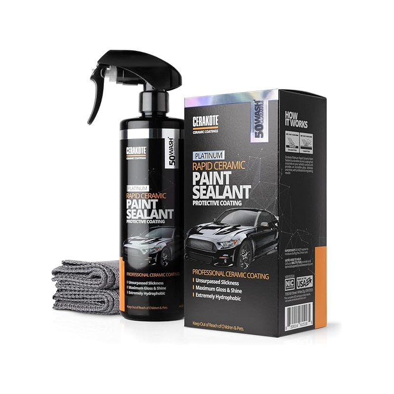 CERAKOTE® Platinum Rapid Ceramic Paint Sealant Spray (14 oz.) - Maximum Gloss & Shine – Extremely Hydrophobic – Unmatched Slickness - Ceramic Spray Coating - 50 Wash Rating