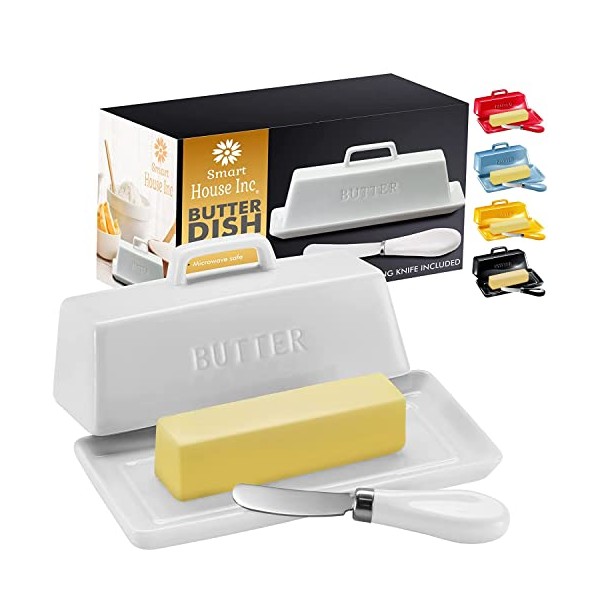 - BEAUTY AND BRAWN - Smart House Inc Butter Dish features contemporary design and premium ceramic construction, which creates a sturdy and beautiful decoration on any countertop