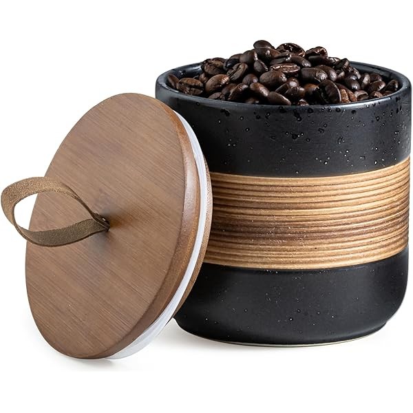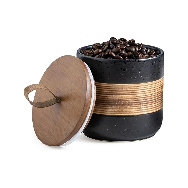 Ceramic Jar with Lid, Coffee Container Kitchen Food Storage Jars for Spice Sugar Tea Bag, Stackable Decorative Jars for Countertop, Black & 18oz