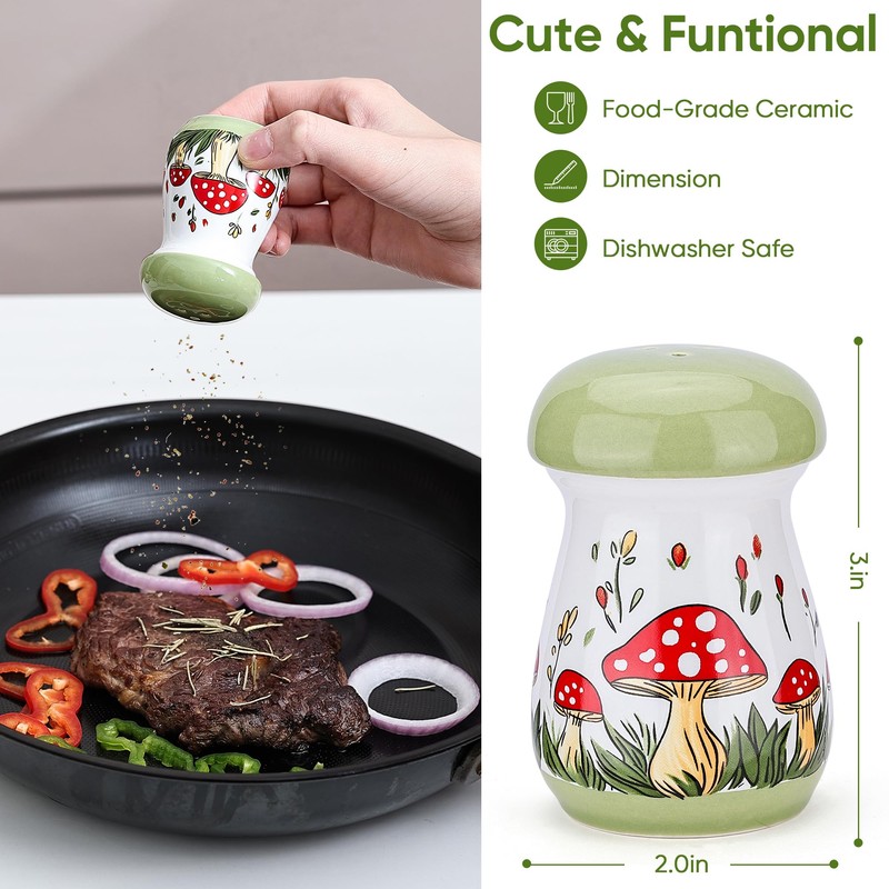 • Charming Gift Idea – Packaged in a beautifully designed box, this mushroom shaker set makes a perfect gift for housewarmings, weddings, birthdays, or anyone who appreciates whimsical kitchen accessories.