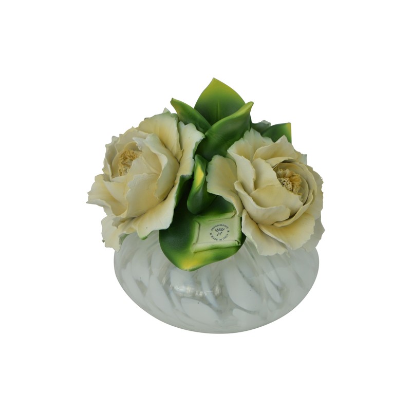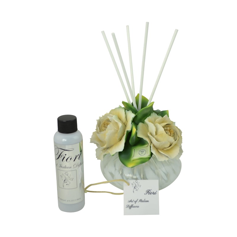 Ceramic Oil Diffuser and Oil Set with Porcelain Capodimonte Roses on Top Includes a 4oz Bottle of Aromamatic Home Fragrance Oil in Cream Flowers and Pomogranate Scent