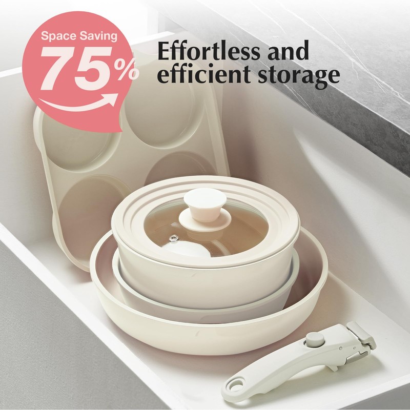 - 【Space-Saving Design】 Stackable pots and pans save up to 75% cabinet space, ideal for small kitchens, dorm rooms, RVs, and camping trips. Keep your kitchen organized without sacrificing functionality.