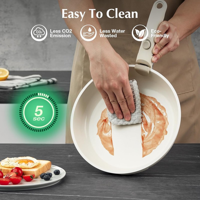 - 【Eco-Friendly & Easy to Clean】 The non-stick ceramic coating allows for quick cleaning with just a paper towel or rinse. Spend less time scrubbing and more time enjoying family meals or hosting dinner parties.