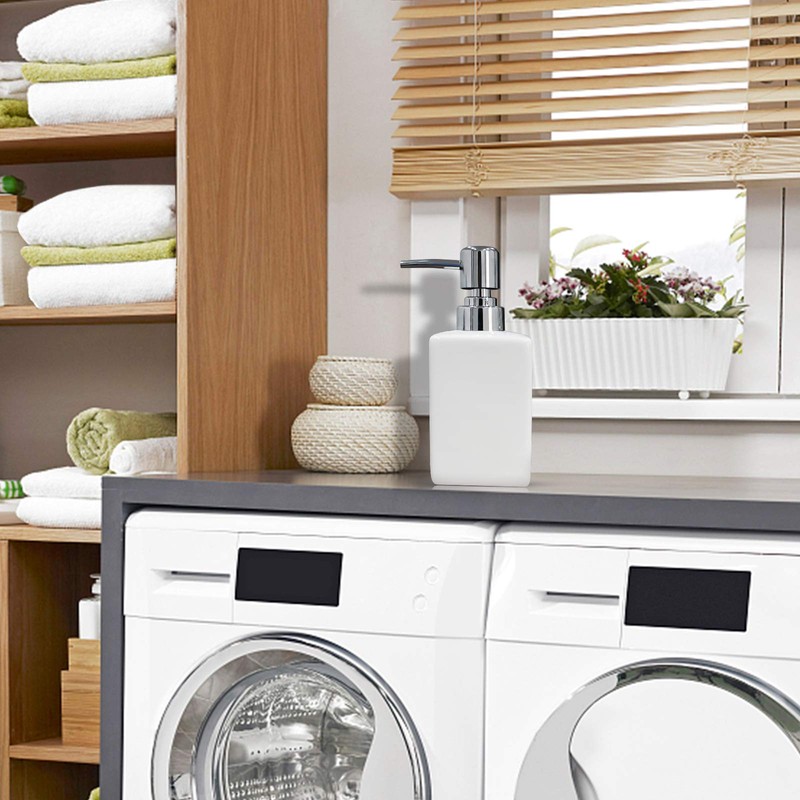 Ceramic Soap Dispensers, 320ML Square Classical Soap & Lotion Pump Dispenser for Kitchen/Bathroom/Laundry Room, Refillable Shampoo, Hand Soap, Dish Soap, Essential Oil (White)